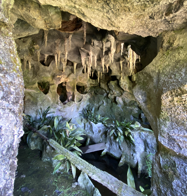 No topo da propriedade encontramos um grande tanque que acumula água para rega e alimentação das fontes por gravidade. Junto a este tanque rodeado de bambus, deparamos com uma construção inacabada denominada “moinho”, da qual não se conhece exatamente a finalidade.